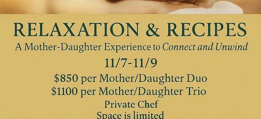 Join us November 7–9 for an intimate invitation only weekend retreat in Aurora, Il designed to strengthen the mother-daughter bond through relaxation, meaningful conversations, and shared meals prepared by a private chef. From soothing massages to cooking together and capturing memories in a keepsake cookbook, this retreat offers the perfect blend of connection and luxury.
